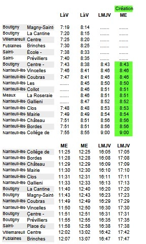 Pour information, vous trouverez en pièce jointe les horaires de ces lignes pour le 9 mars